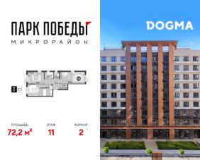 Срок сдачи: 2 кв. 2026, общей площадью 72.2 кв.м., на 11 этаже.
