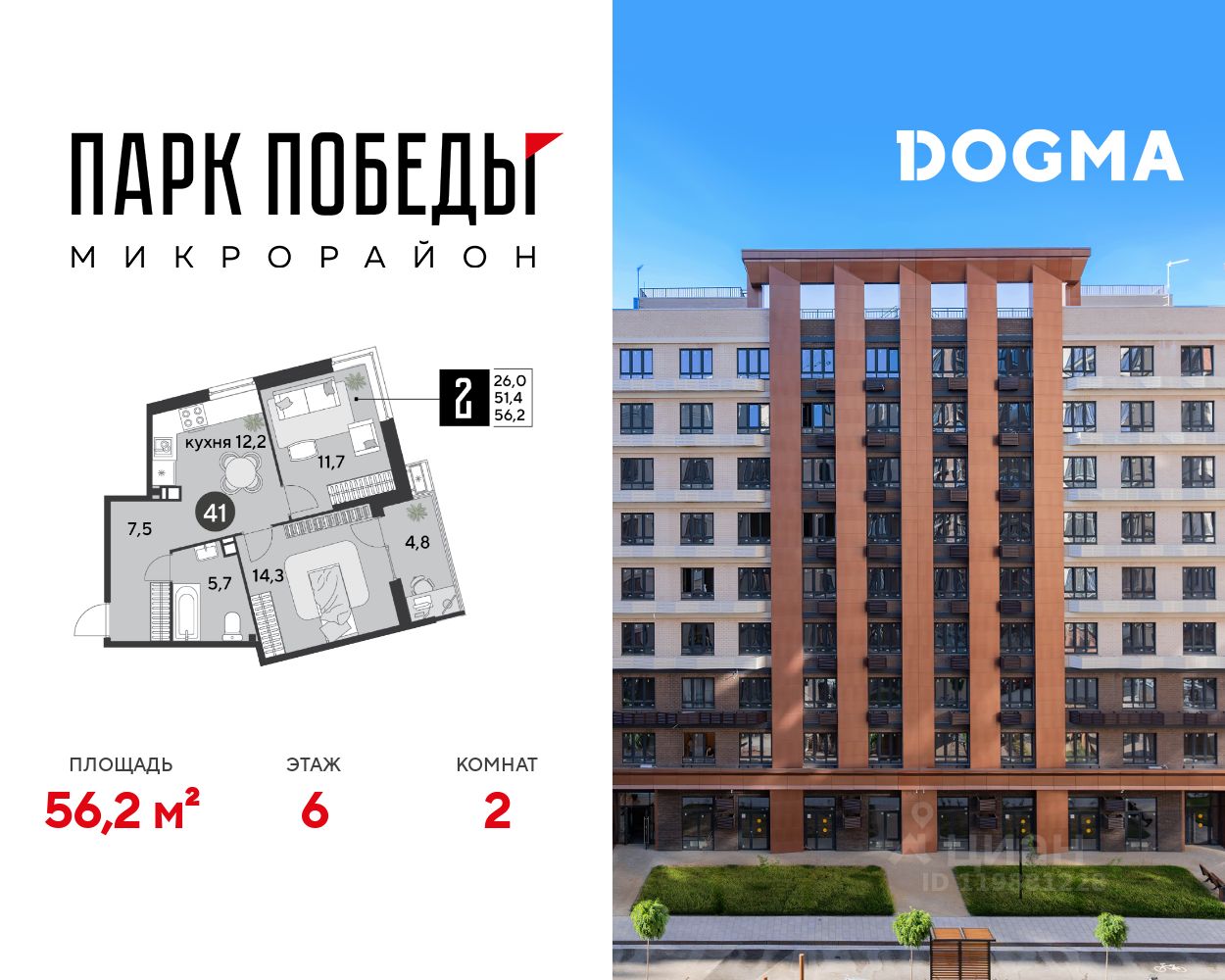 Срок сдачи: 2 кв. 2026, общей площадью 56.2 кв.м., на 6 этаже.