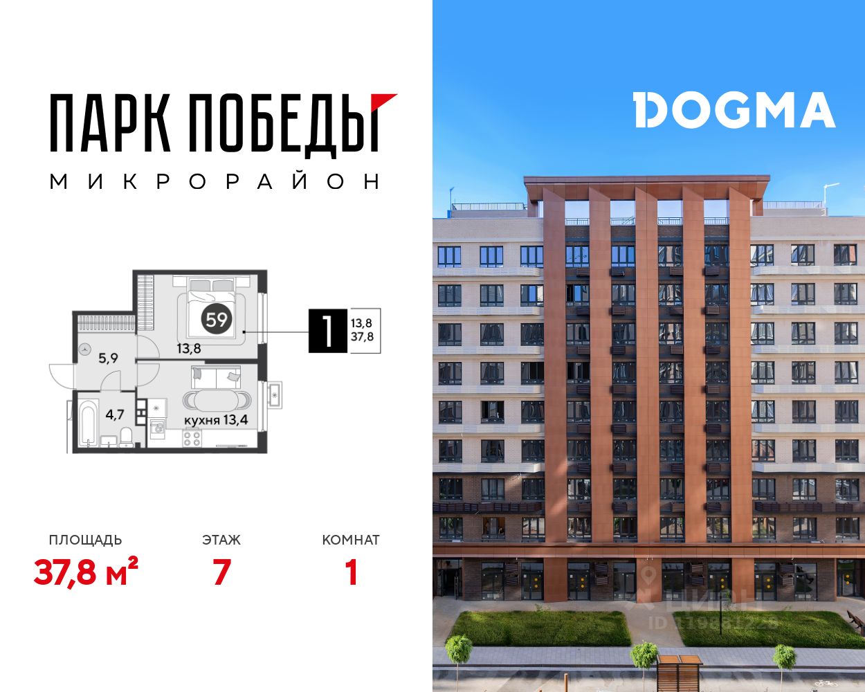 Срок сдачи: 2 кв. 2026, общей площадью 37.8 кв.м., на 7 этаже.