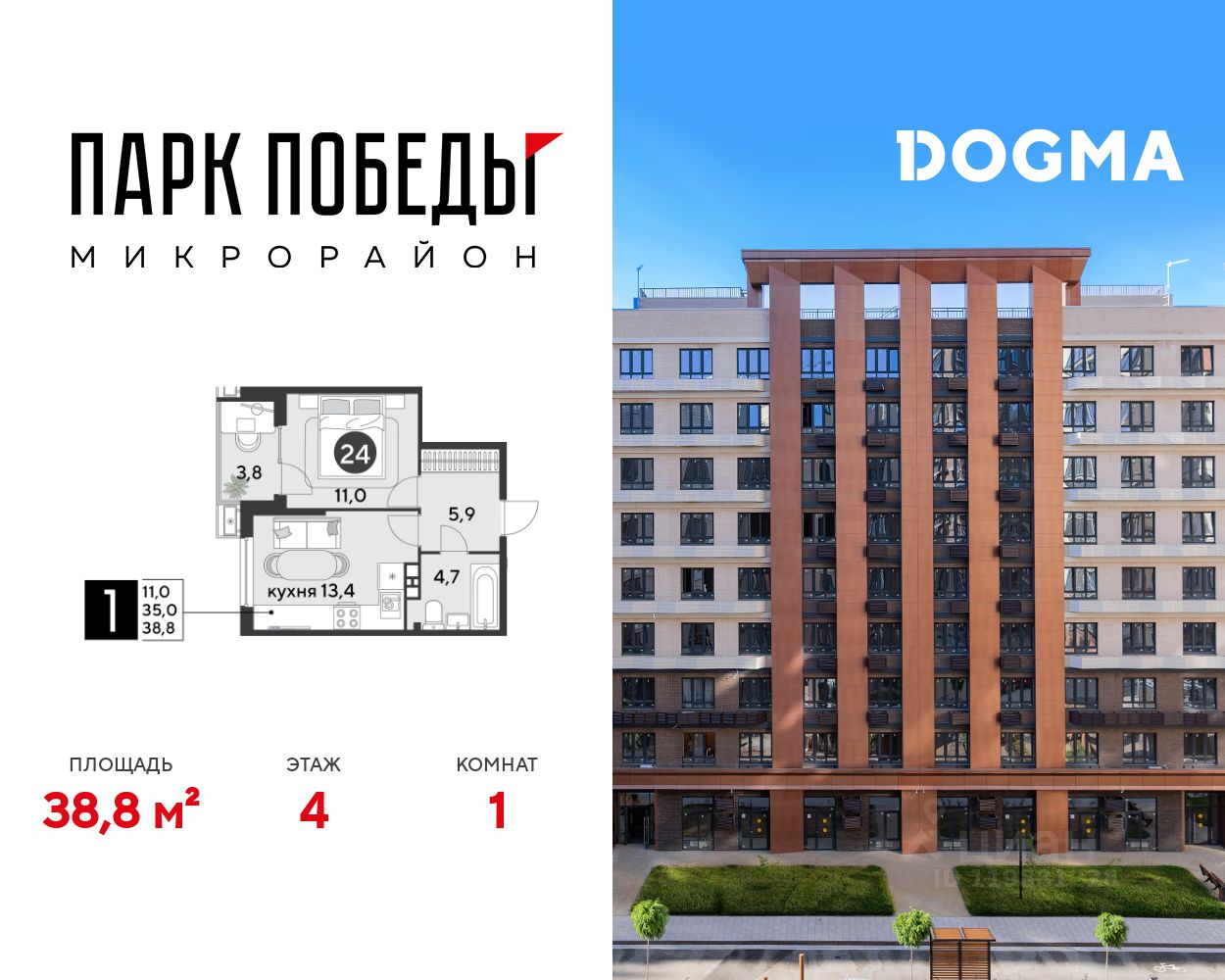 Срок сдачи: 2 кв. 2026, общей площадью 38.8 кв.м., на 4 этаже.