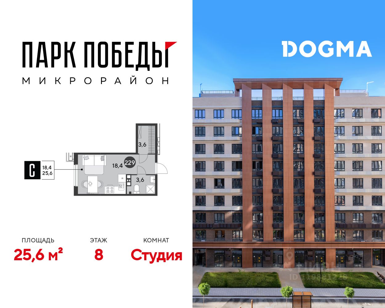 Срок сдачи: 2 кв. 2026, общей площадью 25.6 кв.м., на 8 этаже.