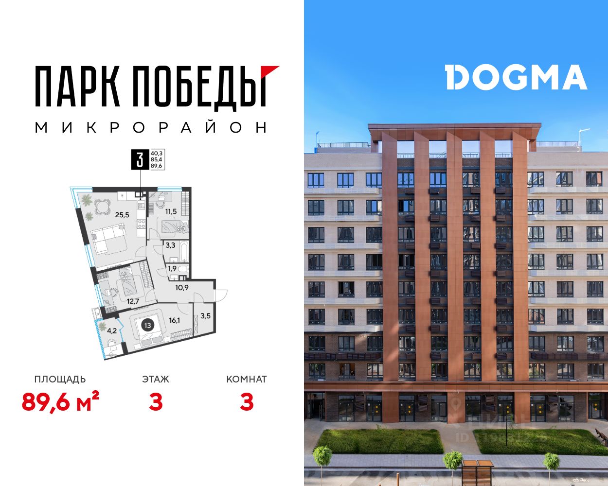 Срок сдачи: 2 кв. 2026, общей площадью 89.6 кв.м., на 3 этаже.