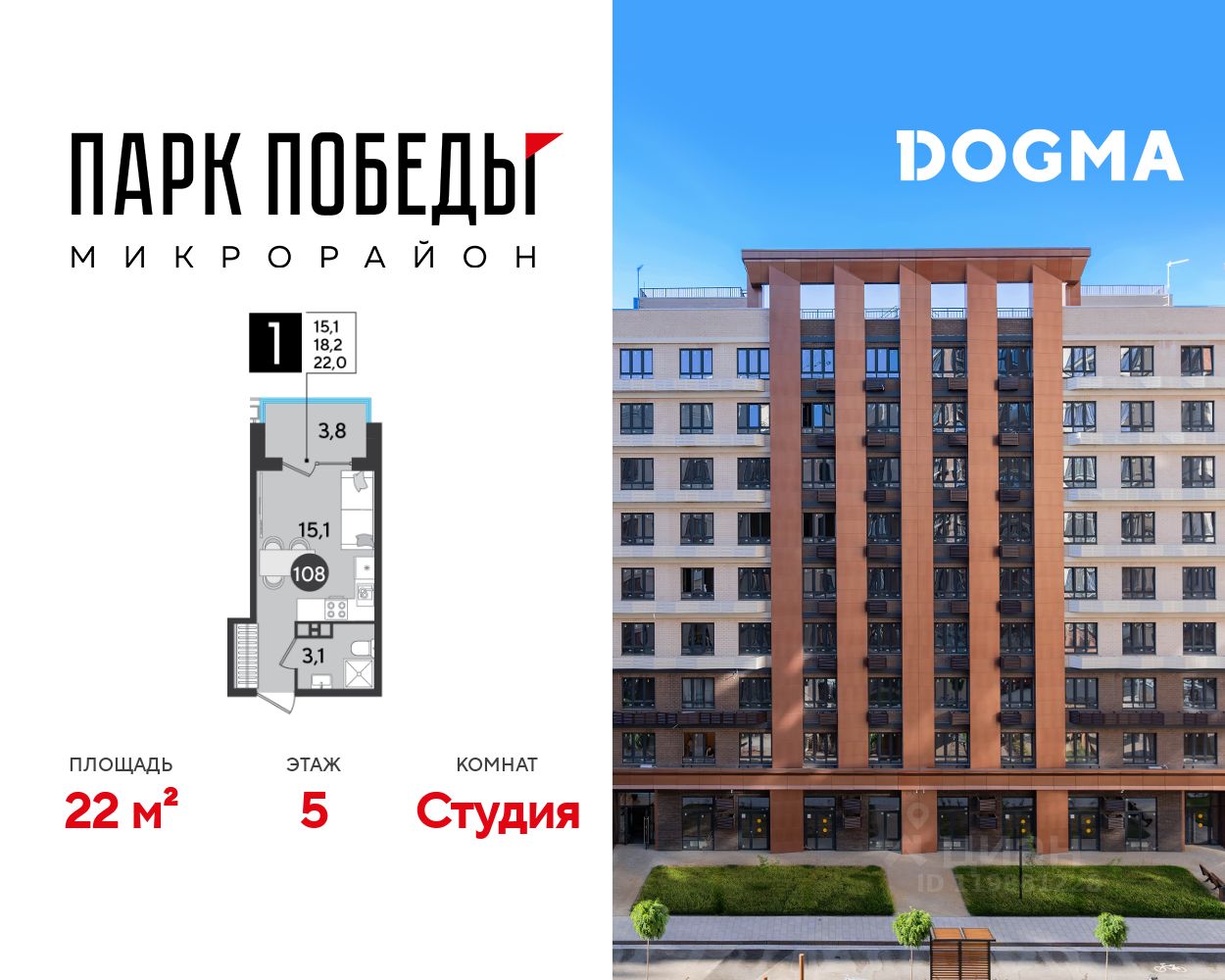 Срок сдачи: 2 кв. 2026, общей площадью 22 кв.м., на 5 этаже.