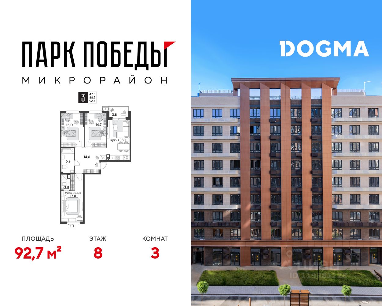 Срок сдачи: 4 кв. 2025, общей площадью 92.7 кв.м., на 8 этаже.