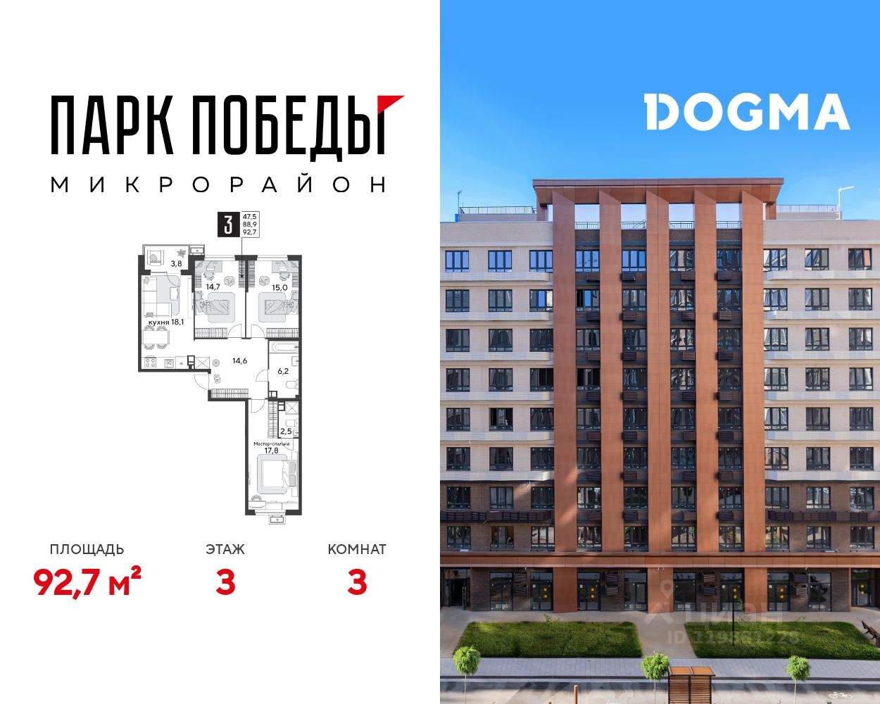 Срок сдачи: 4 кв. 2025, общей площадью 92.7 кв.м., на 3 этаже.