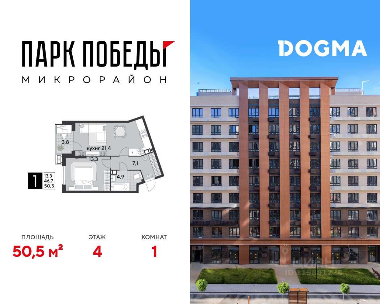 Срок сдачи: 1 кв. 2026, общей площадью 50.5 кв.м., на 4 этаже.