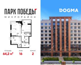 Срок сдачи: 4 кв. 2025, общей площадью 64.2 кв.м., на 16 этаже.
