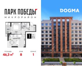 Срок сдачи: 1 кв. 2026, общей площадью 46.3 кв.м., на 8 этаже.