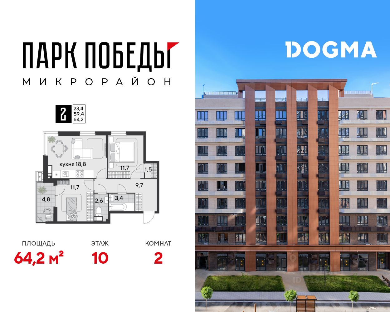 Срок сдачи: 1 кв. 2026, общей площадью 64.2 кв.м., на 10 этаже.
