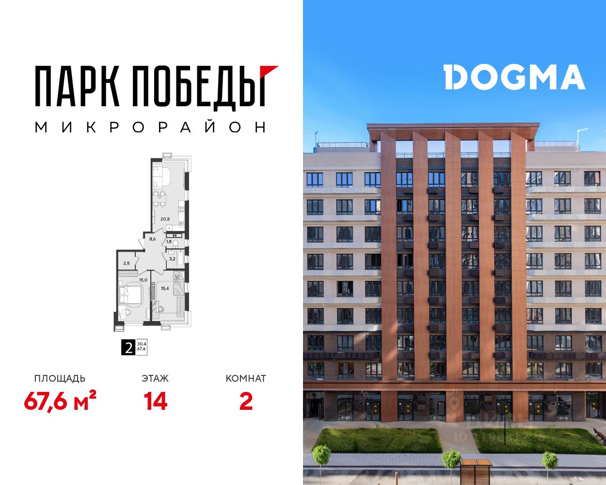 Срок сдачи: 1 кв. 2026, общей площадью 67.6 кв.м., на 14 этаже.