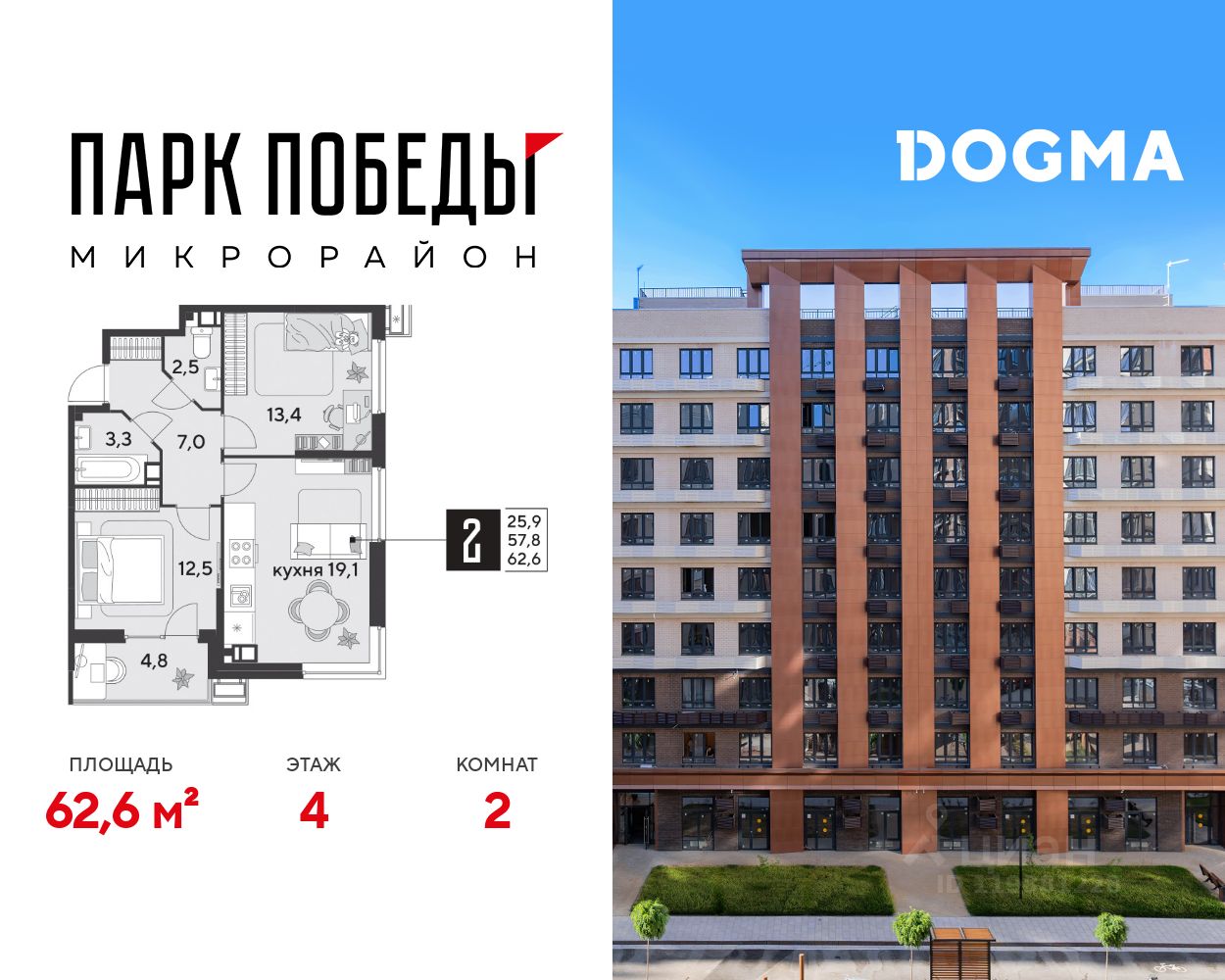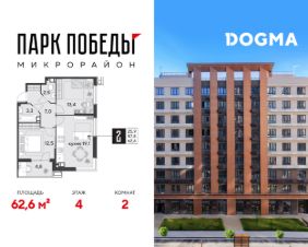 Срок сдачи: 1 кв. 2026, общей площадью 62.6 кв.м., на 4 этаже.
