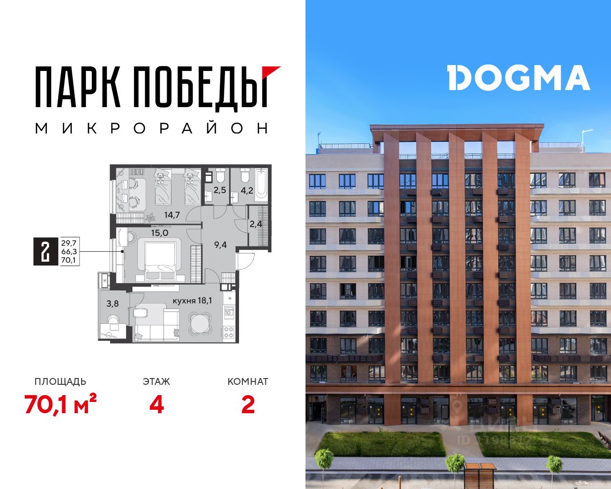 Срок сдачи: 1 кв. 2026, общей площадью 70.1 кв.м., на 4 этаже.