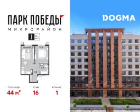 Срок сдачи: 1 кв. 2026, общей площадью 44 кв.м., на 16 этаже.