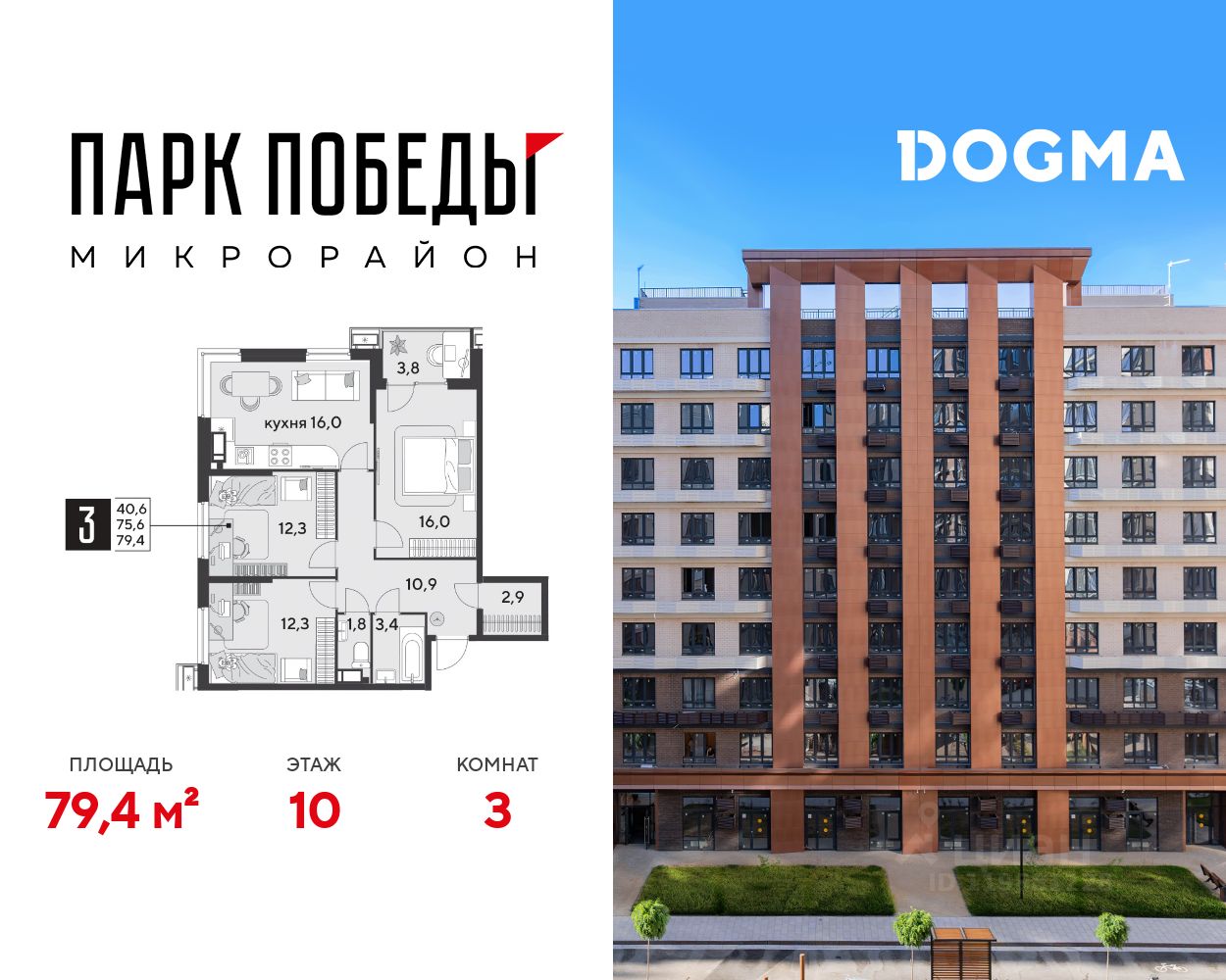 Срок сдачи: 1 кв. 2026, общей площадью 79.4 кв.м., на 10 этаже.