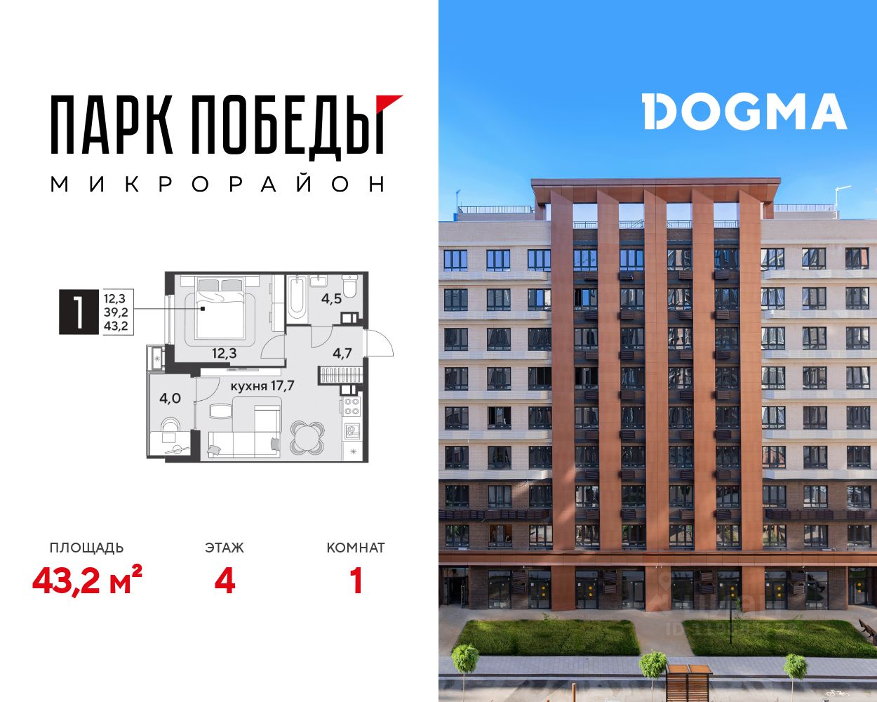 Срок сдачи: 1 кв. 2026, общей площадью 43.2 кв.м., на 4 этаже.