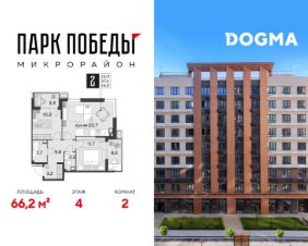 Срок сдачи: 1 кв. 2026, общей площадью 66.2 кв.м., на 4 этаже.