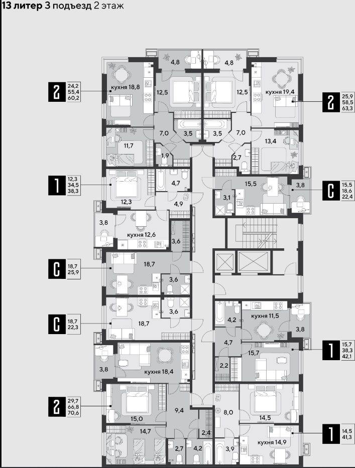 Срок сдачи: 4 кв. 2025, общей площадью 70.6 кв.м., на 2 этаже.