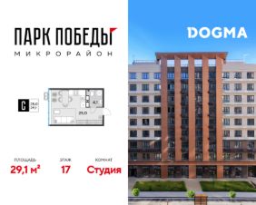 Срок сдачи: 2 кв. 2026, общей площадью 29.1 кв.м., на 17 этаже.