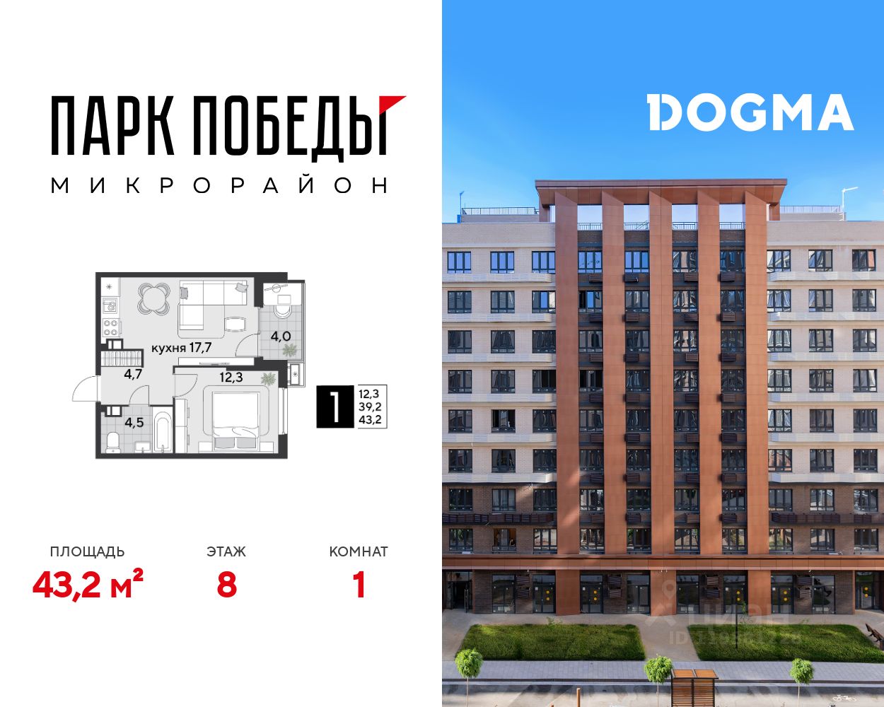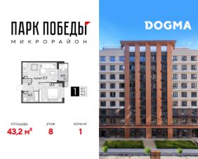 Срок сдачи: 2 кв. 2026, общей площадью 43.2 кв.м., на 8 этаже.
