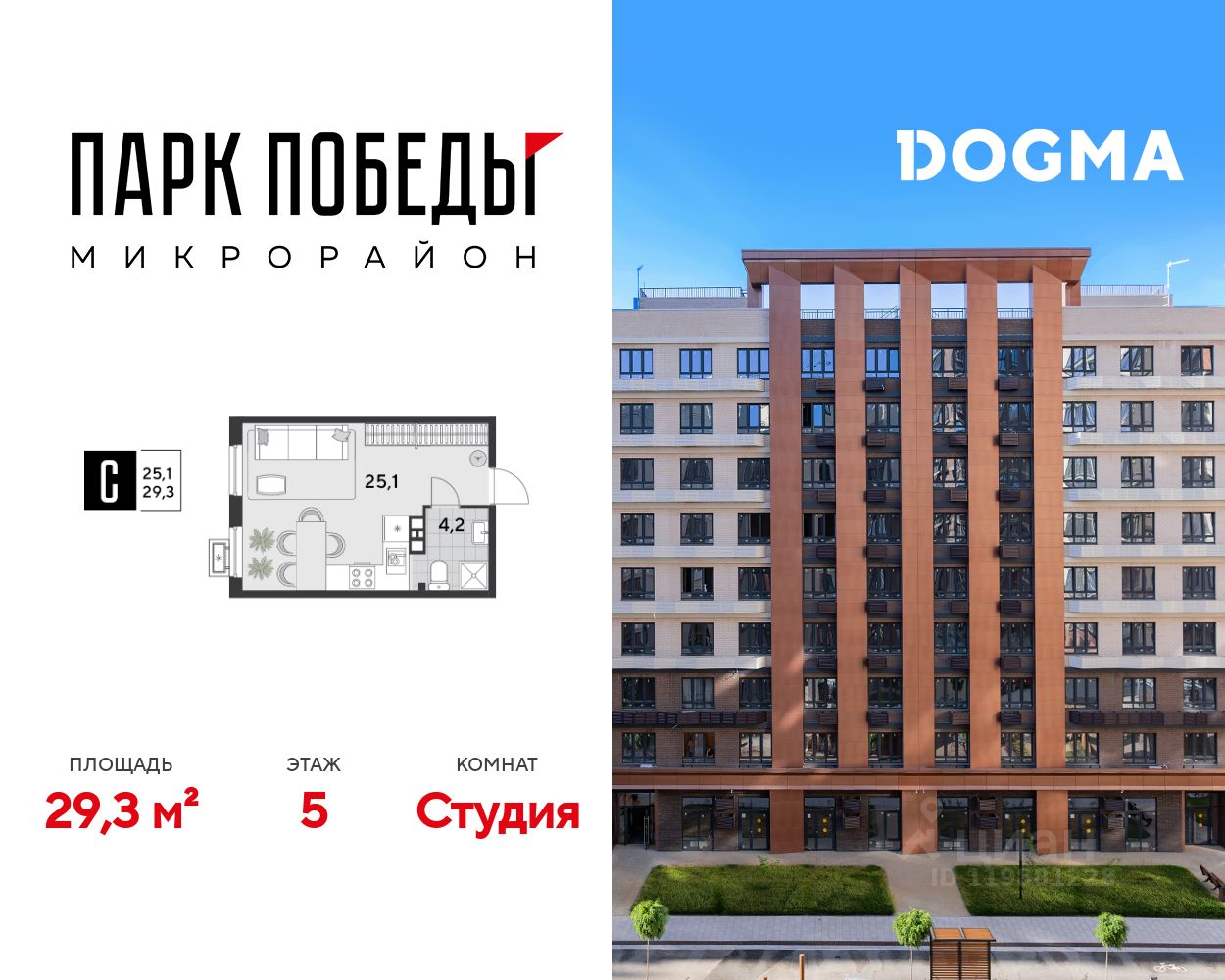 Срок сдачи: 2 кв. 2026, общей площадью 29.3 кв.м., на 5 этаже.