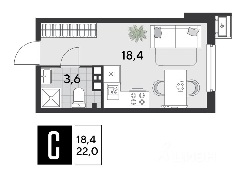 Срок сдачи: 2 кв. 2026, общей площадью 22 кв.м., на 3 этаже.