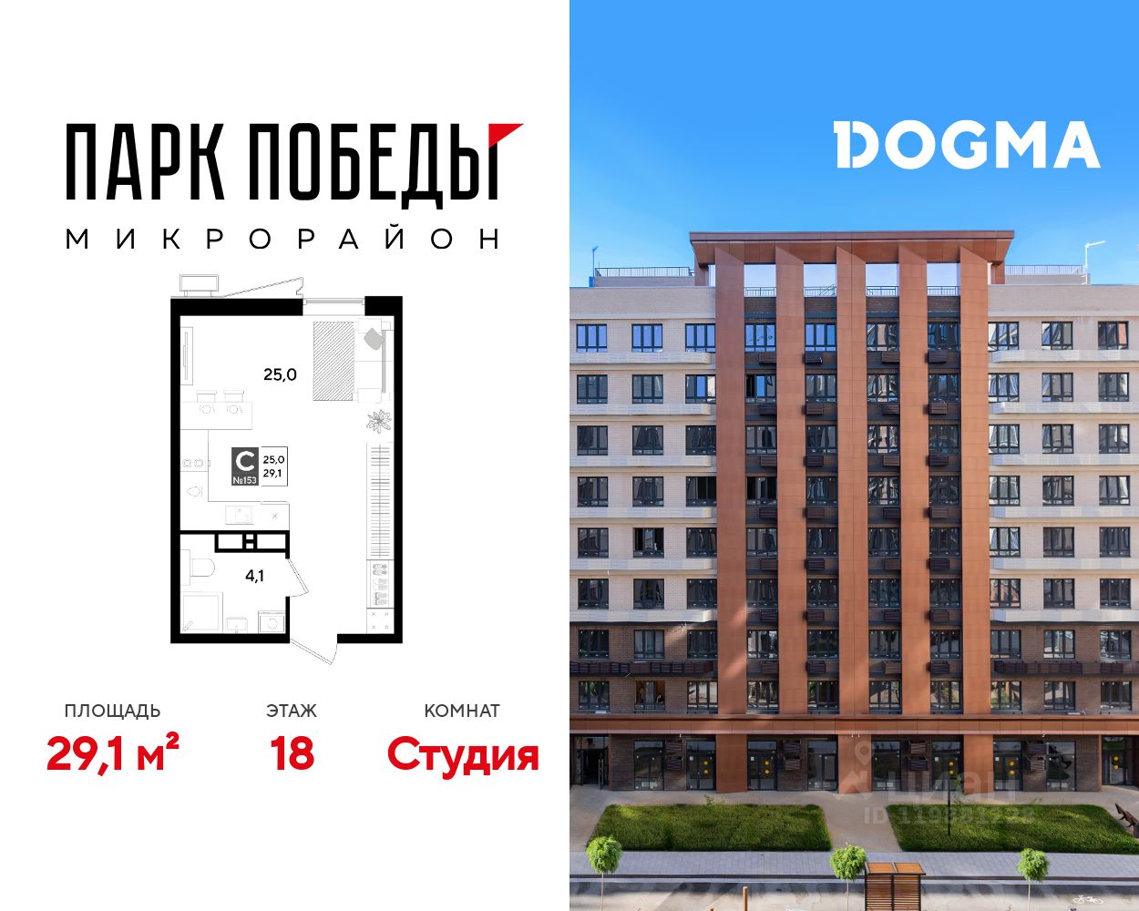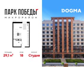 Срок сдачи: 2 кв. 2026, общей площадью 29.1 кв.м., на 18 этаже.