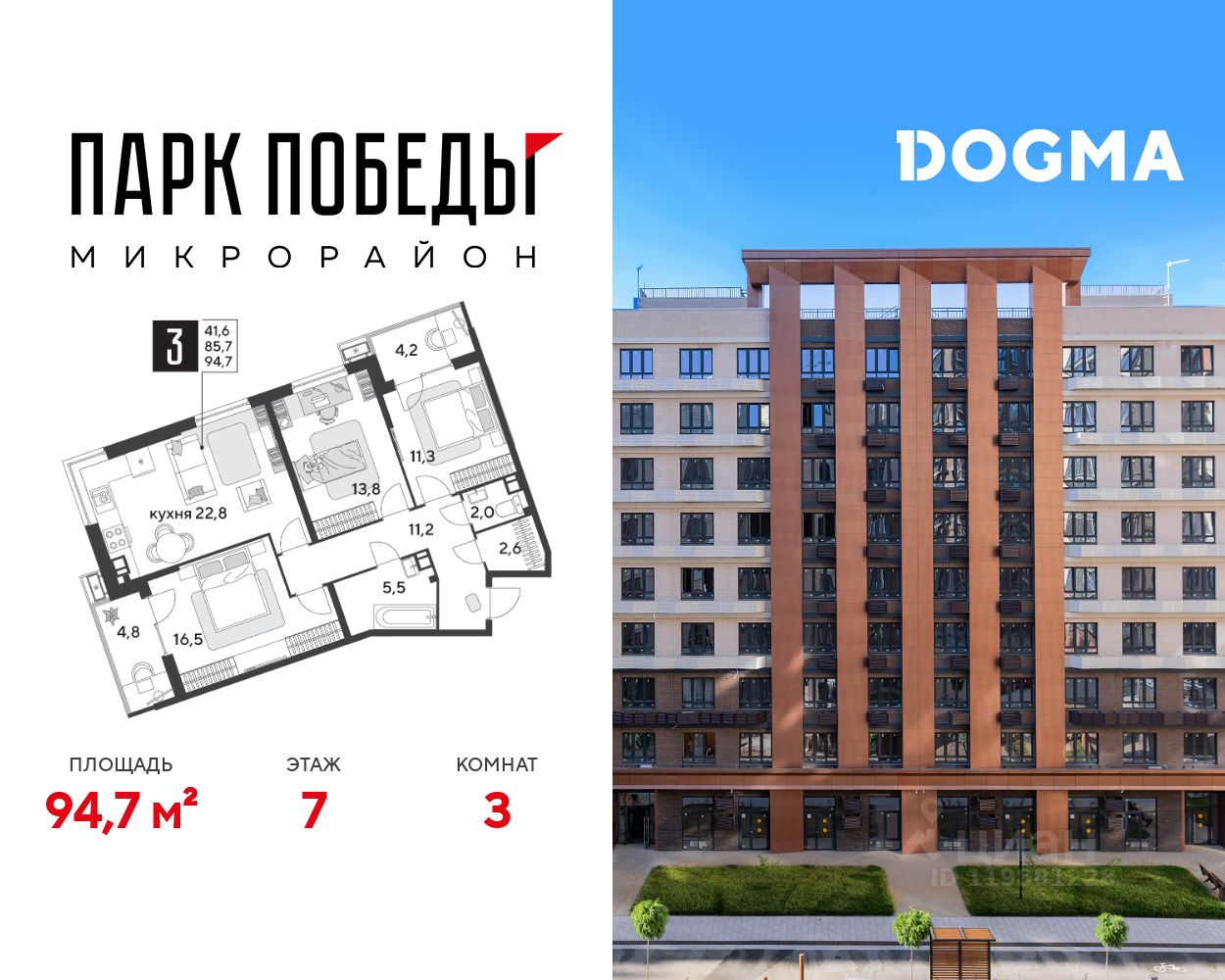 Срок сдачи: 1 кв. 2026, общей площадью 94.7 кв.м., на 7 этаже.