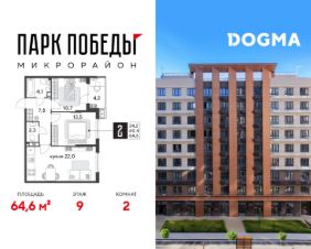 Срок сдачи: 1 кв. 2026, общей площадью 64.6 кв.м., на 9 этаже.