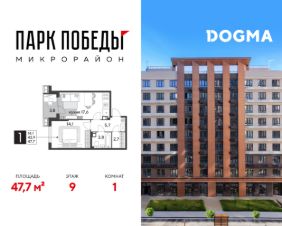 Срок сдачи: 4 кв. 2025, общей площадью 47.7 кв.м., на 9 этаже.