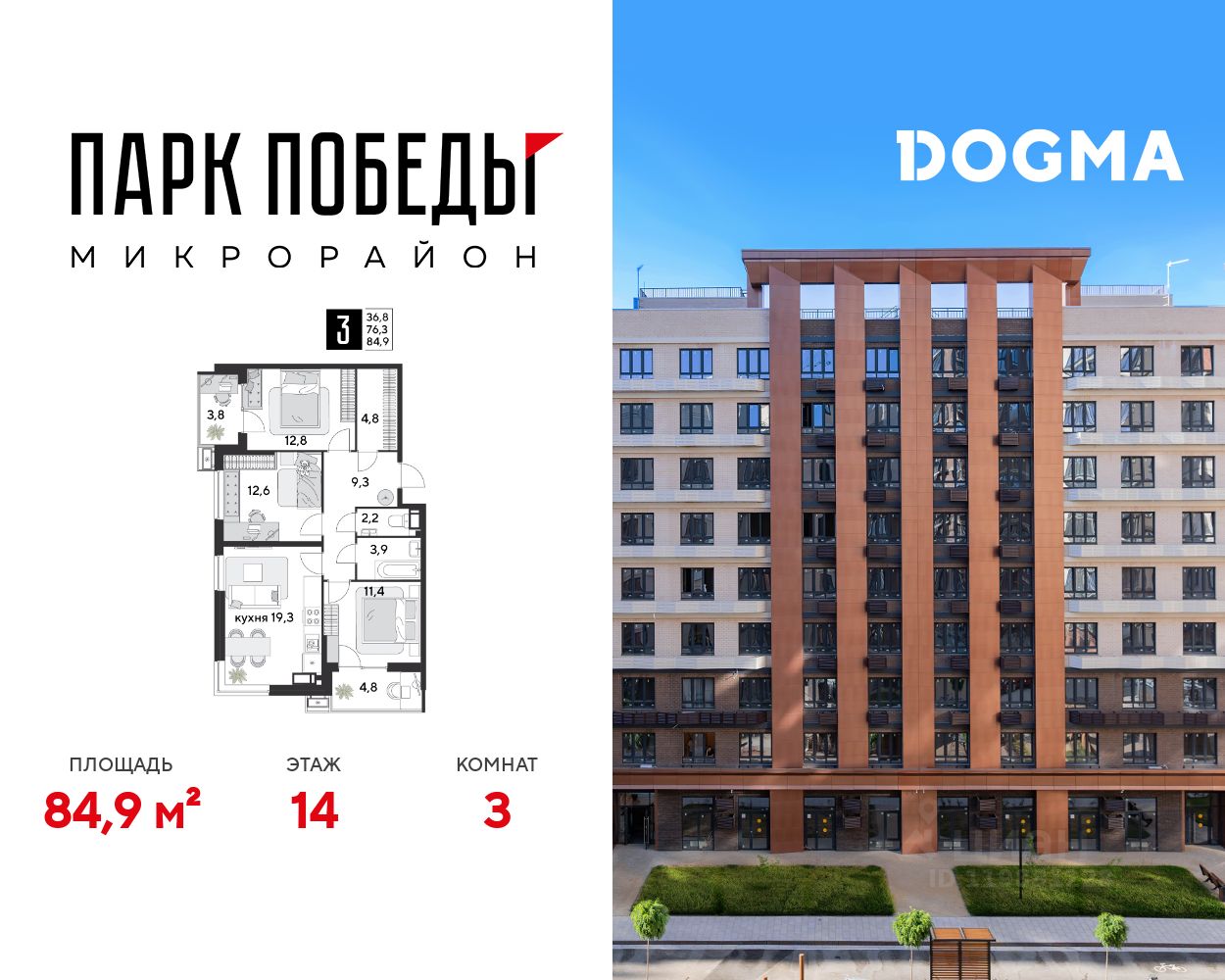 Срок сдачи: 4 кв. 2025, общей площадью 84.9 кв.м., на 14 этаже.