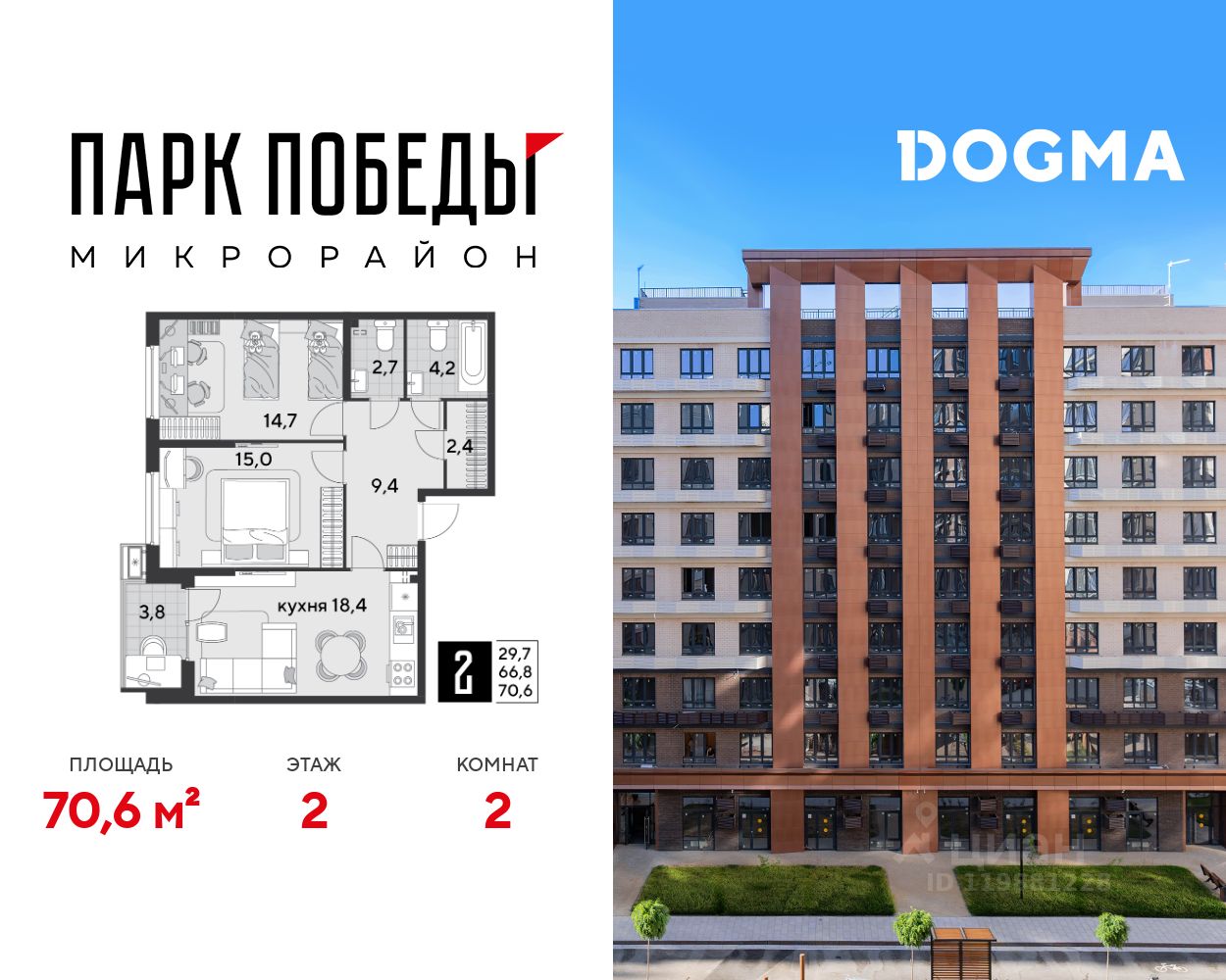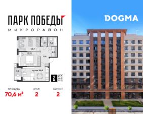 Срок сдачи: 4 кв. 2025, общей площадью 70.6 кв.м., на 2 этаже.