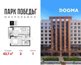 Срок сдачи: 1 кв. 2026, общей площадью 43.7 кв.м., на 2 этаже.