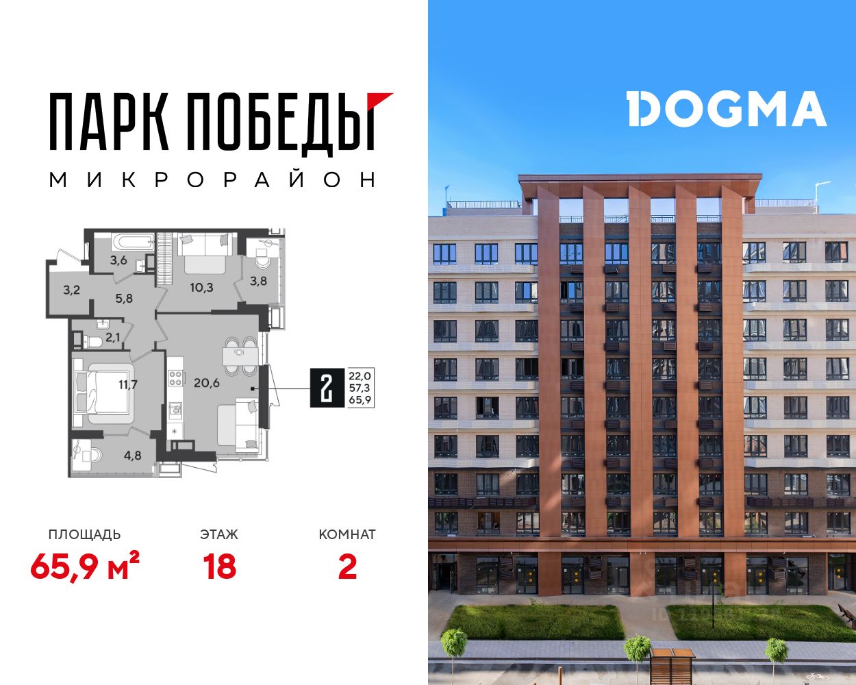 Срок сдачи: 4 кв. 2025, общей площадью 65.9 кв.м., на 18 этаже.