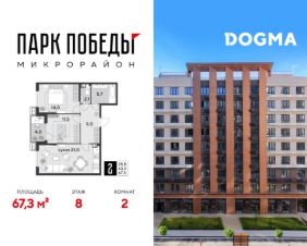 Срок сдачи: 1 кв. 2026, общей площадью 67.3 кв.м., на 8 этаже.