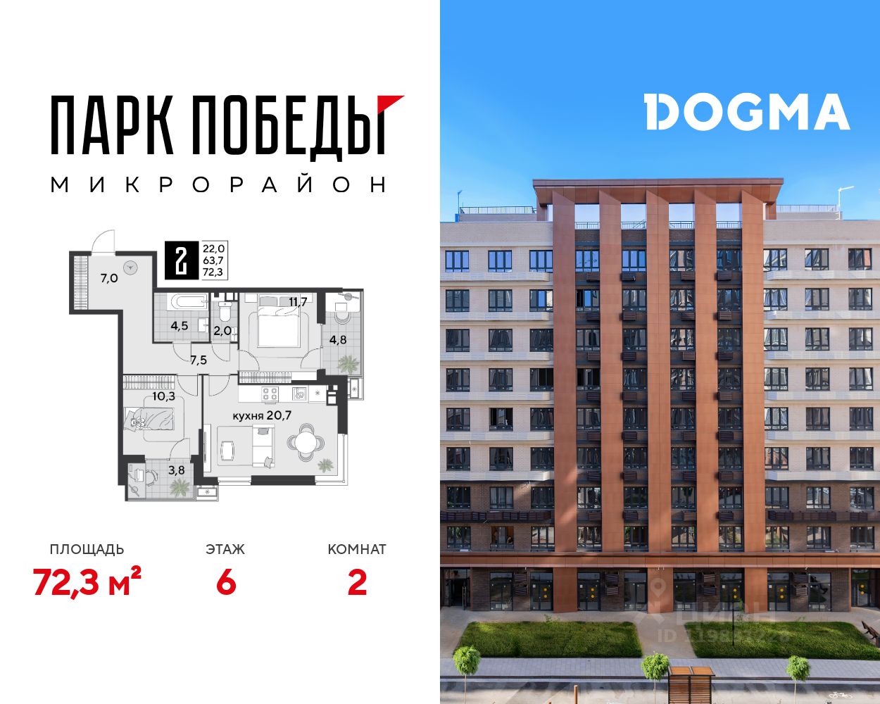 Срок сдачи: 1 кв. 2026, общей площадью 72.3 кв.м., на 6 этаже.