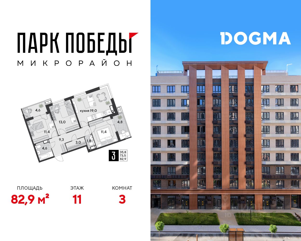 Срок сдачи: 1 кв. 2026, общей площадью 82.9 кв.м., на 11 этаже.