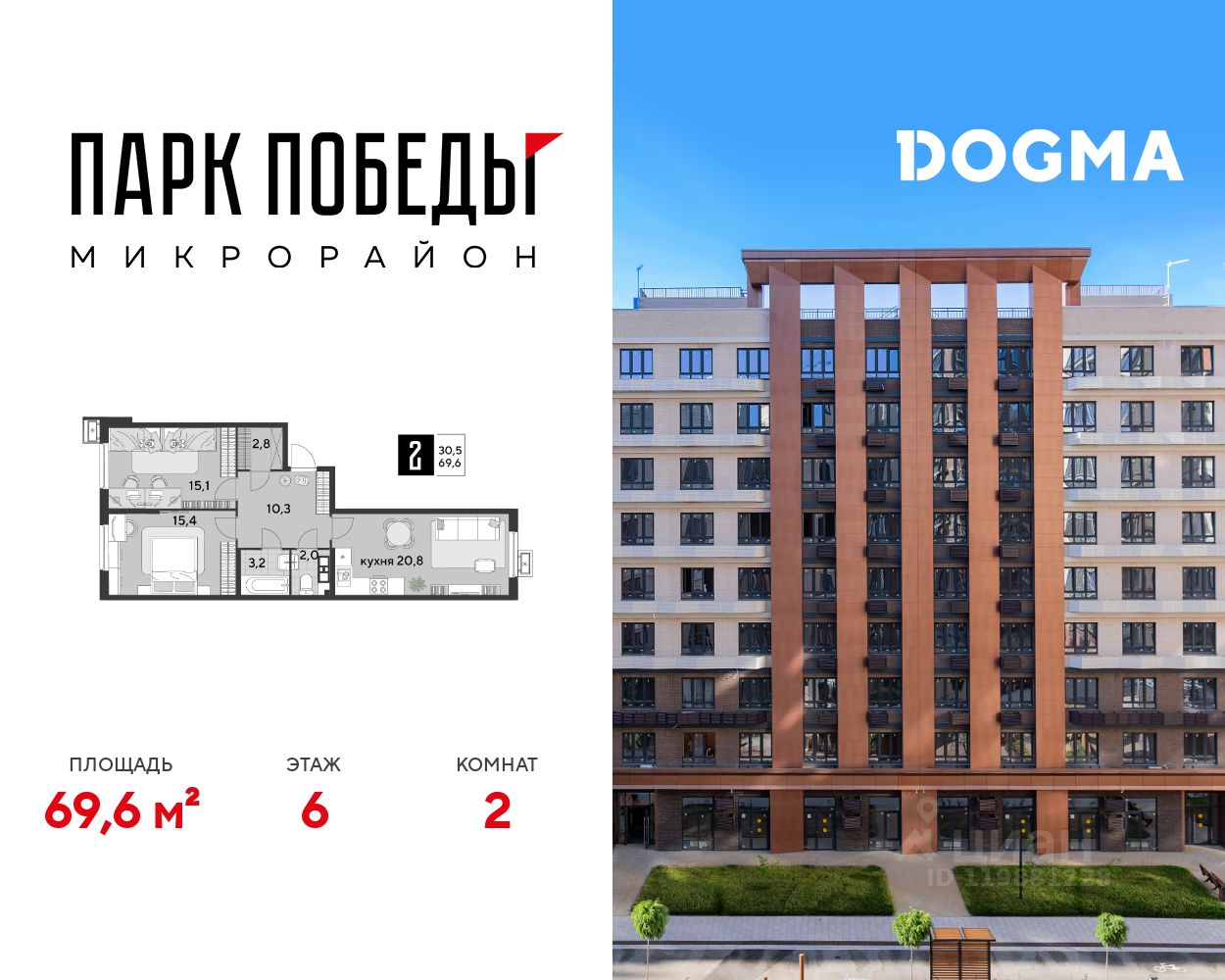 Срок сдачи: 1 кв. 2026, общей площадью 69.6 кв.м., на 6 этаже.