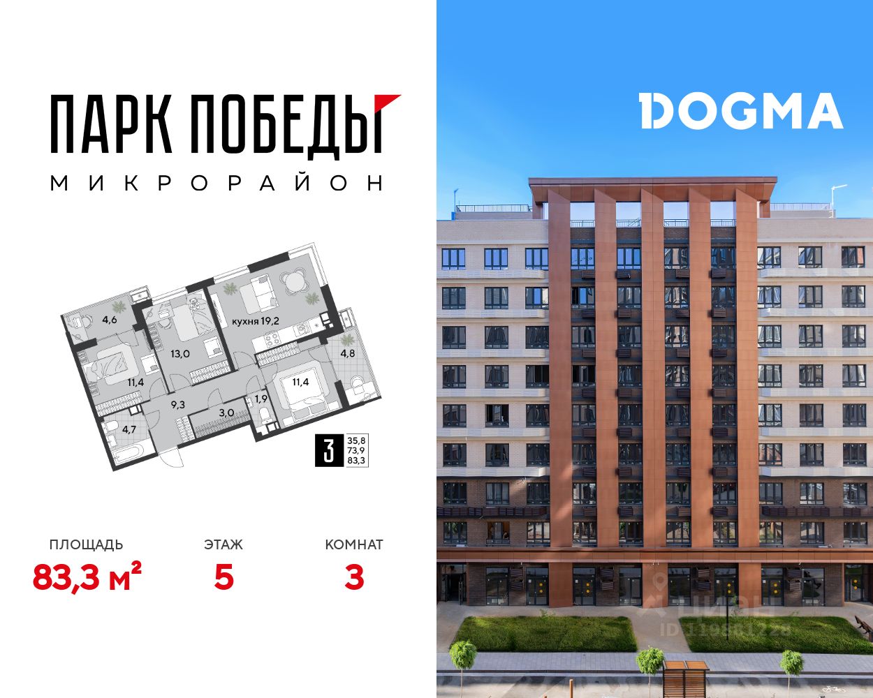 В продаже 3-комнатная квартира от застройщика! ЖК "Парк Победы 2", г. Краснодар, Литер 19