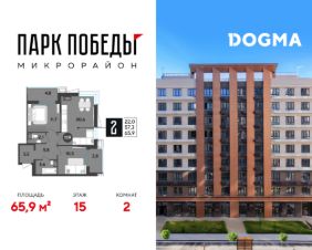 Срок сдачи: 1 кв. 2026, общей площадью 65.9 кв.м., на 15 этаже.