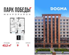 Срок сдачи: 1 кв. 2026, общей площадью 43.2 кв.м., на 9 этаже.
