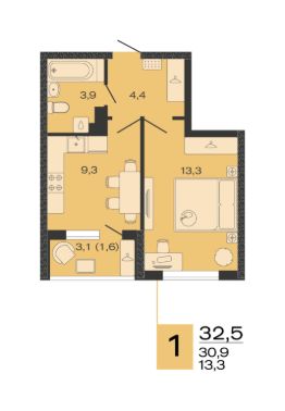 Общая площадь32,5 м²