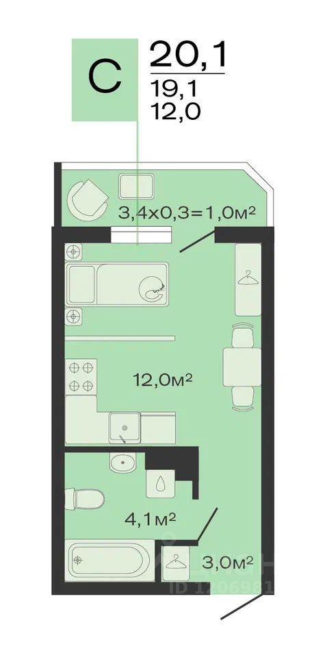 Общая площадь20,1 м²