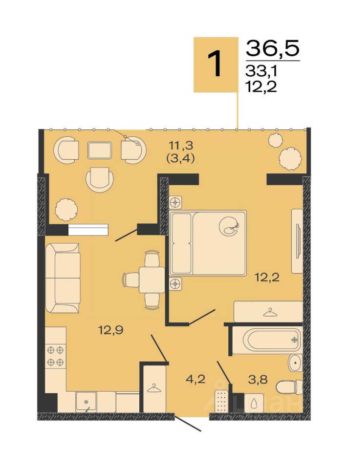 Общая площадь36,5 м²