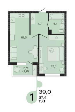 Общая площадь39 м²