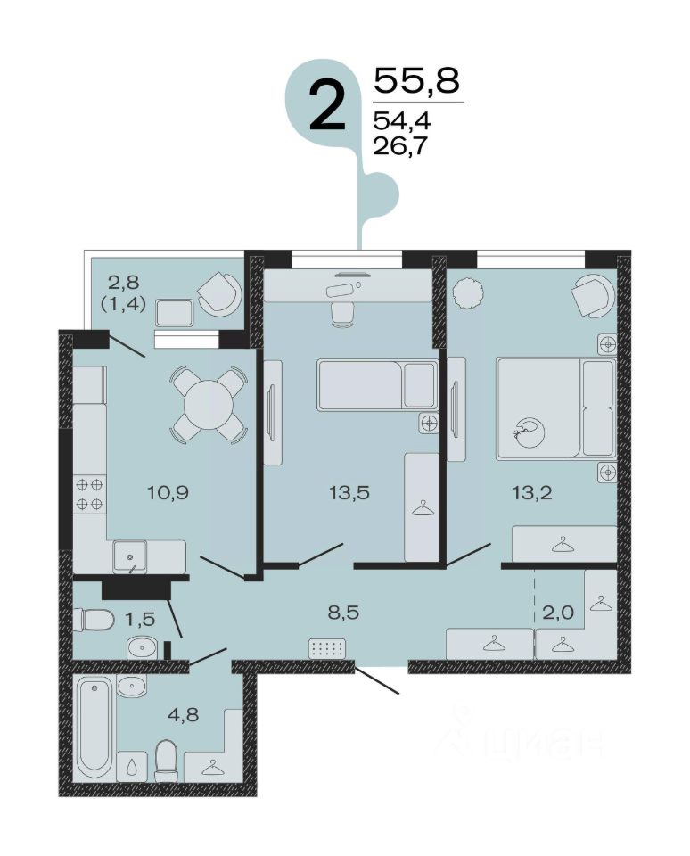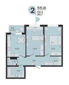 Общая площадь55,8 м²