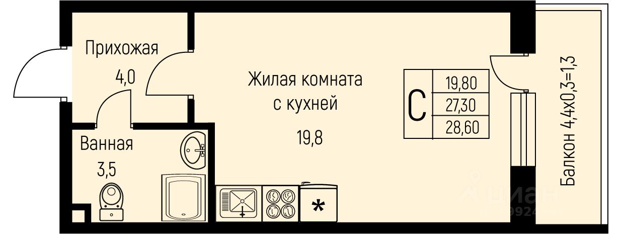 Продаётся студия в строящемся доме (Литер 17), срок сдачи: IV-кв. 2025, общей площадью 28.6 кв.м., на 1 этаже. Новый жилой комплекс "Nova Vita" от застройщика МЕТРИКС DEVELOPMENT расположен по адресу Краснодар, посёлок Берёзовый, улица имени А.Н. Лодыгина.