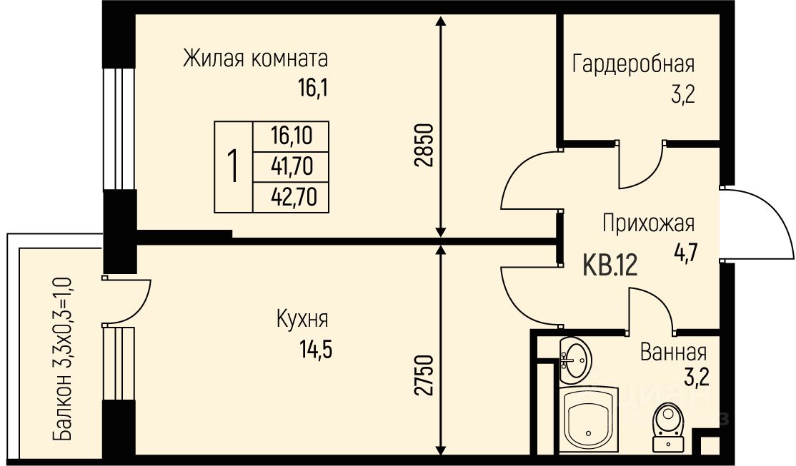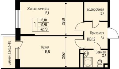 42,7 м²