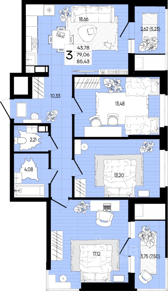 Общая площадь85,26 м²