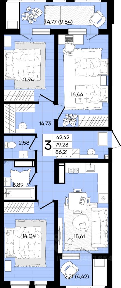 Общая площадь86,21 м²