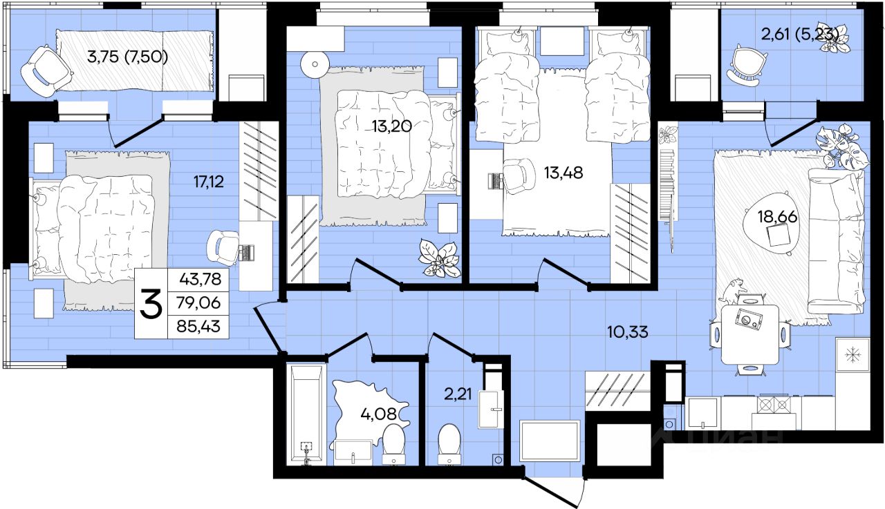 Общая площадь85,26 м²